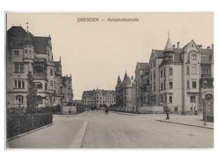 Blick in die Helmholzstraße/Ecke George-Bähr-Straße. Historische Ansichtskarte um 1910.