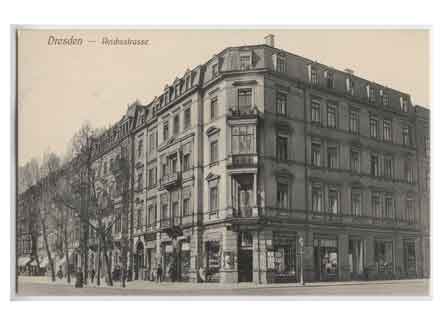 Südvorstadt Blick auf den Kleiderladen Koch & Bitriol in der Reichsstraße/Ecke Lindenaustraße. Historische Ansichtskarte um 1910. |