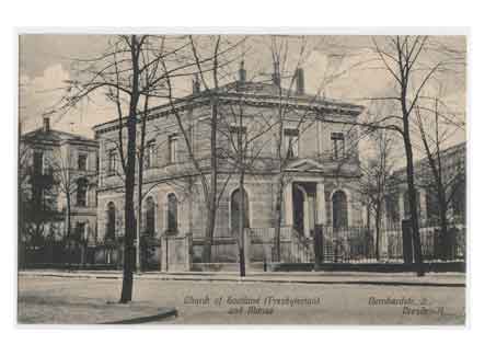 Blick auf die Schottische Kirche in der Bernhardstraße. Historische Ansichtskarte um 1910.