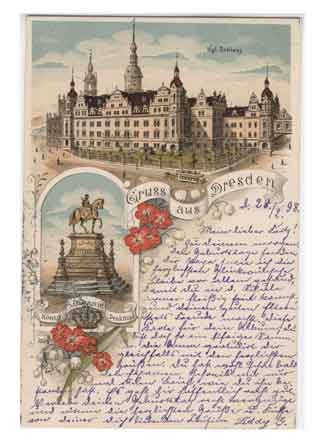 Residenzschloss Residenzschloss am Taschenberg und König-Johann-Denkmal auf dem Theaterplatz. Lithographie. Historische Ansichtskarte um 1900. |