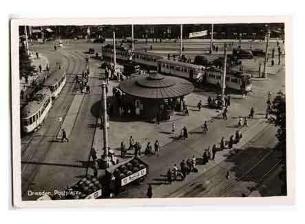 Blick auf den Postplatz. Historische Ansichtskarte um 1930.