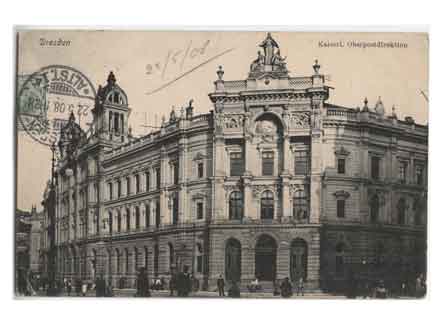 Blick auf das Kaiserliche Postamt am Postplatz. Historische Ansichtskarte um 1908.