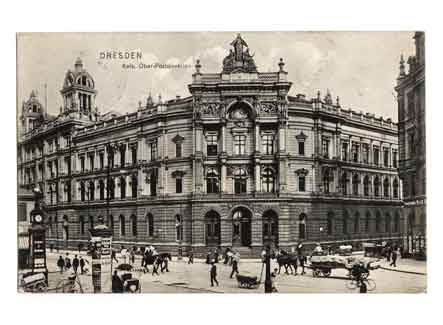 Blick auf das Kaiserliche Postamt am Postplatz. Historische Ansichtskarte um 1910.