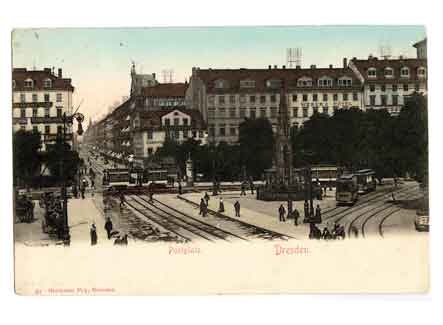 Blick auf den Postplatz zur Wettiner Straße. Historische Ansichtskarte um 1900.