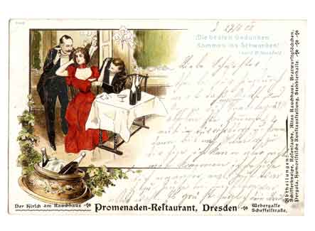 Grußkarte aus dem Promenaden-Restaurant. Historische Ansichtskarte um 1900.
