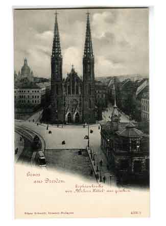 Blick auf die Sophienkirche an der Sophienstraße. Historische Ansichtskarte um 1905.