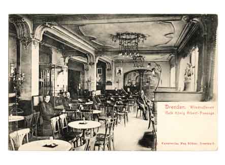 Blick in ein Restaurant. Historische Landkarte um 1905.