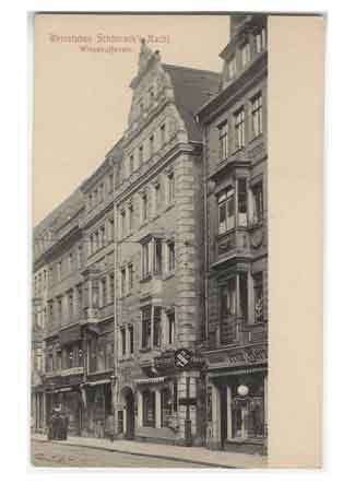 Blick auf ein Wohn- und Geschäftshaus. Historische Ansichtskarte um 1910.