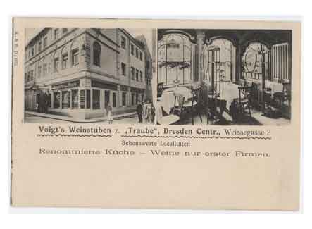 Grußkarte aus den Weinstuben zur "Traube" in der Weißegasse 2. Historische Ansichtskarte um 1905.