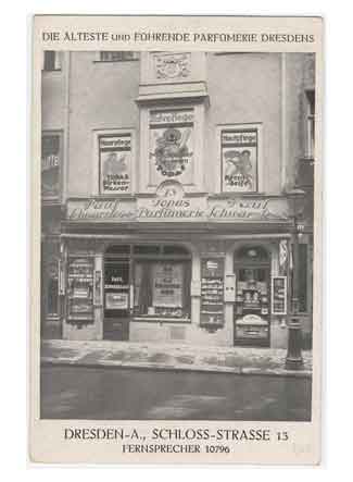 Blick auf Jonas (?) Parfümerie in der Schlossstraße 13. Historische Ansichtskarte um 1910.