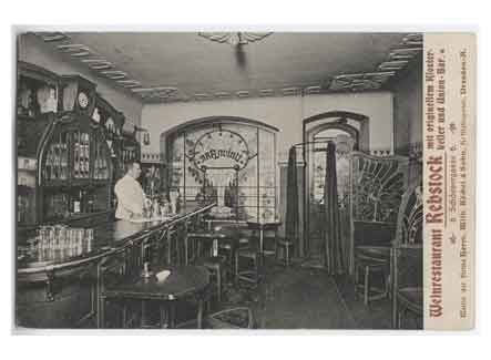 Blick in das Weinrestaurant Rebstock. Historische Ansichtskarte um 1910.