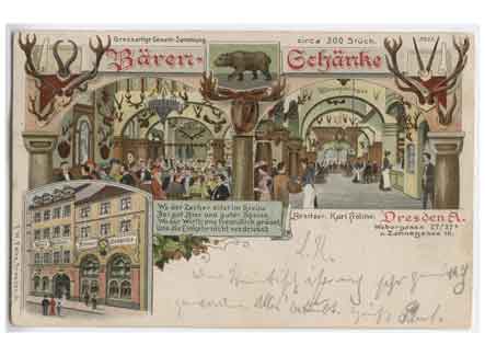 Grußkarte aus der Bärenschänke. Historische Ansichtskarte um 1900.