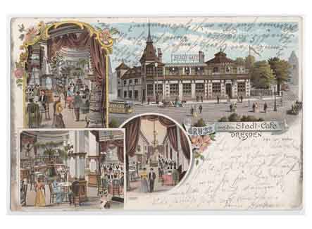 Grußkarte aus dem Stadt-Café. Historische Ansichtskarte um 1900.