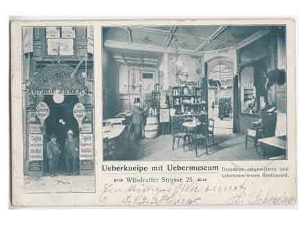 Innere Altstadt Blick in die "Ueberkneipe" mit dem Uebermuseum in der Wilsdruffer Straße 25. Historische Ansichtskarte um 1905. |