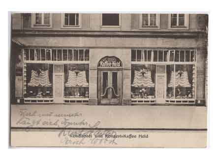 Blick auf die Konditorei und Café "Held". Historische Ansichtskarte um 1910.