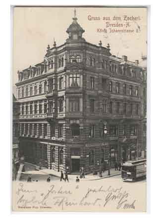 Blick auf den Zocherl (?) in der König-Johann-Straße. Historische Ansichtskarte um 1905.