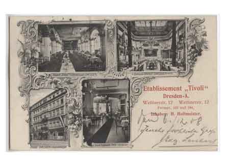 Grußkarte aus dem "Tivoli"-Etablissement. Historische Ansichtskarte um 1905.