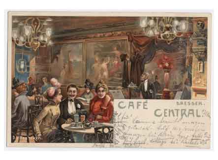 Grußkarte aus dem Café Central. Historische Ansichtskarte um 1905.