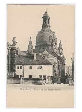 Blick auf die Frauenkirche am Neumarkt. Historische Ansichtskarte um 1905.