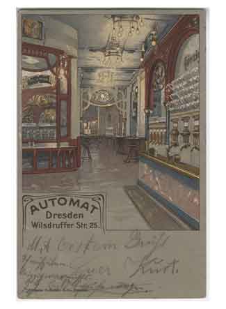 Grußkarte aus dem "Automat" in der Wilsdruffer Straße 25. Historische Ansichtskarte um 1905.