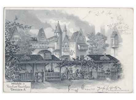 Blick auf das Restaurant "Hirsch" am Rauchhaus. Historische Ansichtskarte um 1910.
