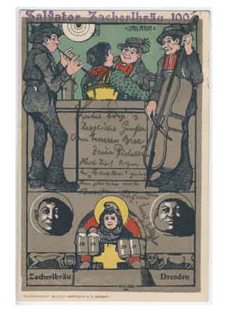 GruĂkarte aus dem zacherlbräu. Historische Ansichtskarte um 1900.