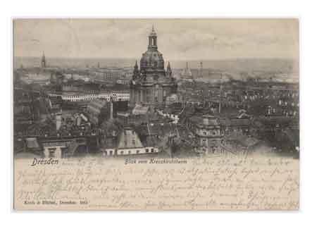 Blick von der Kreuzkirche auf die Frauenkirche und den Neumarkt. Historische Ansichtskarte um 1905.