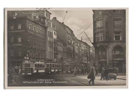 Blick auf die Wilsdrufferstraße Ecke Postplatz. Historische Ansichtskarte um 1910.
