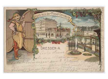 Grußkarte von der Mosel-Terrasse. Historische Ansichtskarte um 1900.
