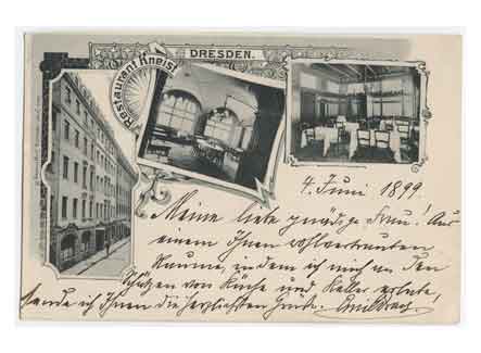 Grußkarte vom Restaurant Kneist. Historische Ansichtskarte von 1899.