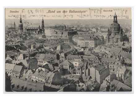 Blick vom Rathausturm auf die historische Altstadt. Historische Ansichtskarte um 1905.