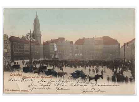 Blick auf den Altmarkt mit Droschken-Stellplatz. Historische Ansichtskarte um 1900.