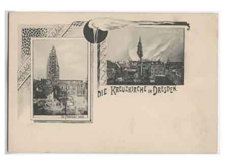 Grußkarte von Dresden mit der Kreukirche. Historische Ansichtskarte um 1900.