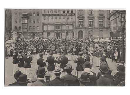 Musikerspiel auf dem Altmarkt. Historische Ansichtskarte um 1910.