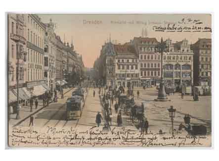 Blick auf den Postplatz in Richtung Wilsdruffer Straße. Historische Ansichtskarte um 1905.