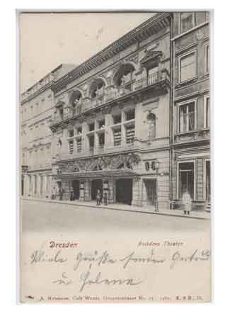 Blick auf das Residenz Theater in der Zirkusstraße. Historische Ansichtskarte um 1905.
