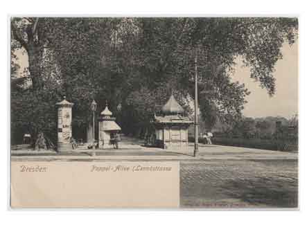 Blick auf die Pappel-Allee an der Lennéstraße. Historische Ansichtskarte um 1905.