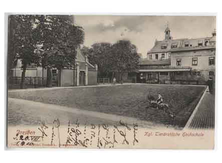 Blick auf den Reitplatz der Königlich Tierärztlichen Hochschule. Historische Ansichtskarte um 1905.