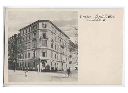 Blick auf die Zinzendorfstraße 42. Historische Ansichtskarte um 1904.