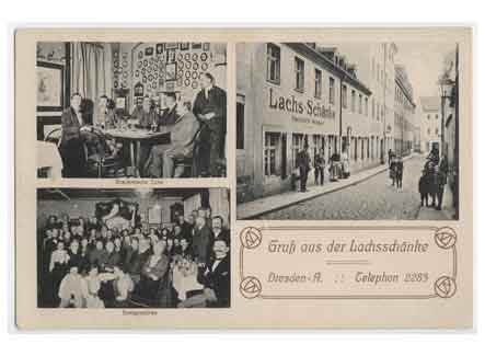 GruĂkarte aus der Lachsschänke. Historische Ansichtskarte um 1905.